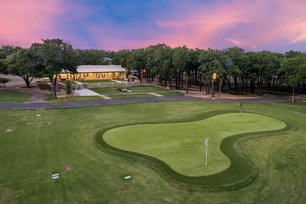 Nestled on 24 stunning acres along the historic Chisholm Trail, The Right Mix Ranch is a resort-style retreat that combines natural beauty, modern luxury, and investment potential, just a short drive from Dallas Fort Worth.At its heart is a professionally designed 9 hole, Par 30 executive golf course with synthetic greens, manicured Bermuda fairways, and a deep well-fed irrigation system. Decorative bridges, limestone features, and flowing creeks enhance the course’s character and charm.Two stocked ponds ideal for fishing and aesthetics feature aerating fountains and double as irrigation sources. Five unique homes, each tucked privately throughout the wooded landscape, offer rental income, guest lodging, or private use, making this ranch as functional as it is beautiful.Additional features include a greenhouse, workshops, pasture space, and an RV pad. Golden sunsets and wide-open skies create postcard-worthy moments across the rolling terrain.Conveniently located near the newly upgraded Granbury Regional Airport with a 4,000 sq ft terminal and extended runway—this property offers quick access for corporate or private aircraft, enhancing its appeal as a retreat, event venue, or luxury rental investment.Luxury, income, privacy, and access all in one unmatched opportunity.