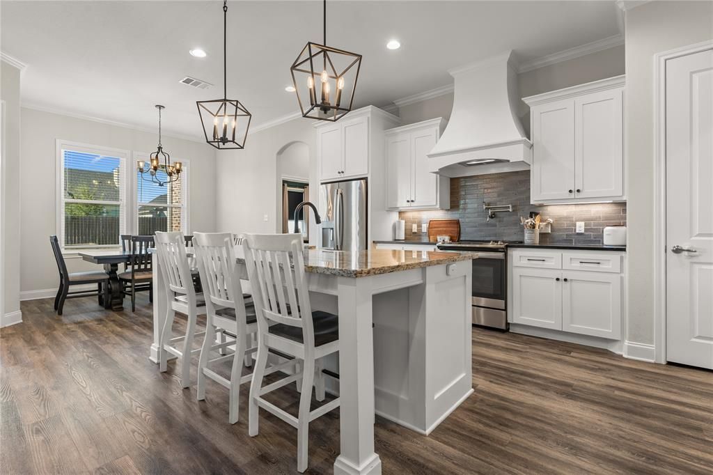 Beautiful 4-bedroom, 2-bathroom home offering 1,816 sq. ft. of well-designed living space. The open-concept layout features a spacious living room centered around a stunning fireplace and flows seamlessly into the kitchen and dining area. The kitchen includes a large island, pot filler, granite countertops, stainless steel appliances, and abundant cabinet storage — ideal for cooking and entertaining. The isolated primary suite offers privacy and comfort with dual vanities, a large walk-in shower, and a generous closet. The secondary bedrooms are spacious and share a full bathroom with dual sinks and updated finishes. Additional features include a covered patio perfect for outdoor gatherings, a dedicated laundry room, modern fixtures throughout, and neutral finishes that complement any style. With its functional floor plan, quality craftsmanship, and upgraded details, this home is move-in ready and built for everyday living.
