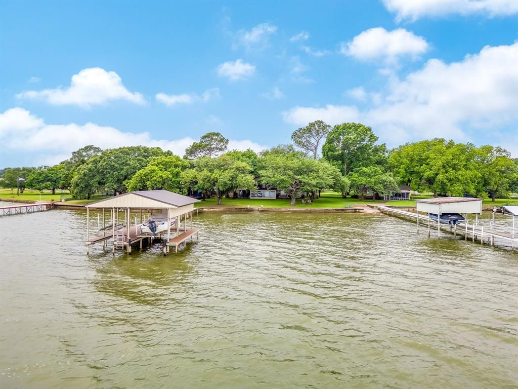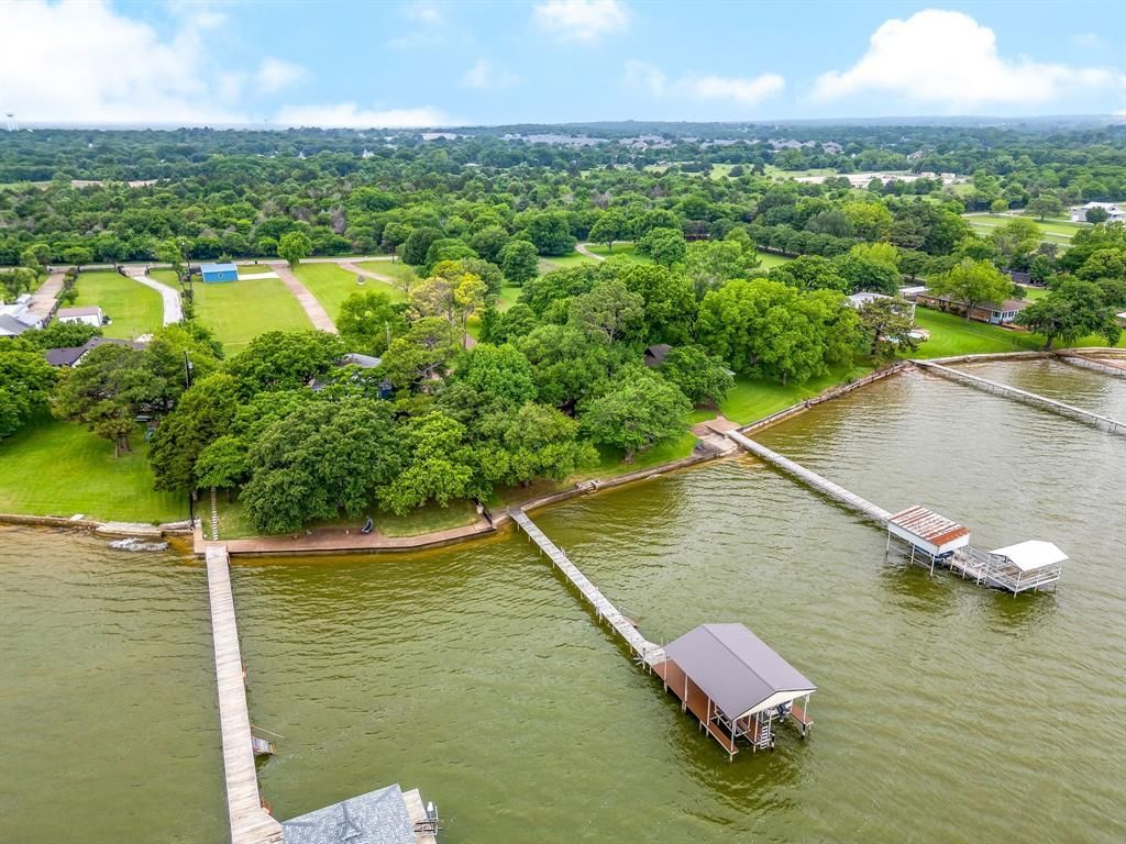 Escape to Paradise! Premier 1.4-Acre Lakefront Estate on Eagle Mountain Lake! Experience the pinnacle of lakefront living with this gorgeously renovated masterpiece, featuring a rare 105 feet of prime shoreline on the main body of Eagle Mountain Lake! Situated on a stunning lot with beautiful trees, this property offers resort living and breathtaking panoramic views. Inside the home is warm and welcoming, with a completely redesigned and renovated chef's dream kitchen, a peaceful primary suite with spacious spa-like bath, 4 huge bedrooms, 3.5 luxurious baths, and a formal dining area. The renovated design features updated flooring and gorgeous modern updates throughout. This home is a lovely place to entertain friends and family! Two large, open living areas flow nicely to the dining room main living area with stone fireplace, and lovely kitchen! Added Bonus: A heated and cooled sunroom (approx. 325 sq ft, not included in main house SF) offers stunning, year-round water views. Completing your lake resort style living is boat house and lift, a winding concrete drive and local wildlife, a charming Juliet balcony off the front overlooking a private courtyard, a spacious back deck with stunning views of the lake, a 2-car garage, and separate covered boat-RV parking. New roof to be installed in May 2026. For your added comfort, the home has newer energy-efficient windows and two new HVAC units were installed in 2019. A large walk-in attic space provides extra storage. This is a rare opportunity to own a turnkey, updated property on one of Texas's premier lakes. Enjoy the tranquility of nature without sacrificing modern luxury! Welcome home!