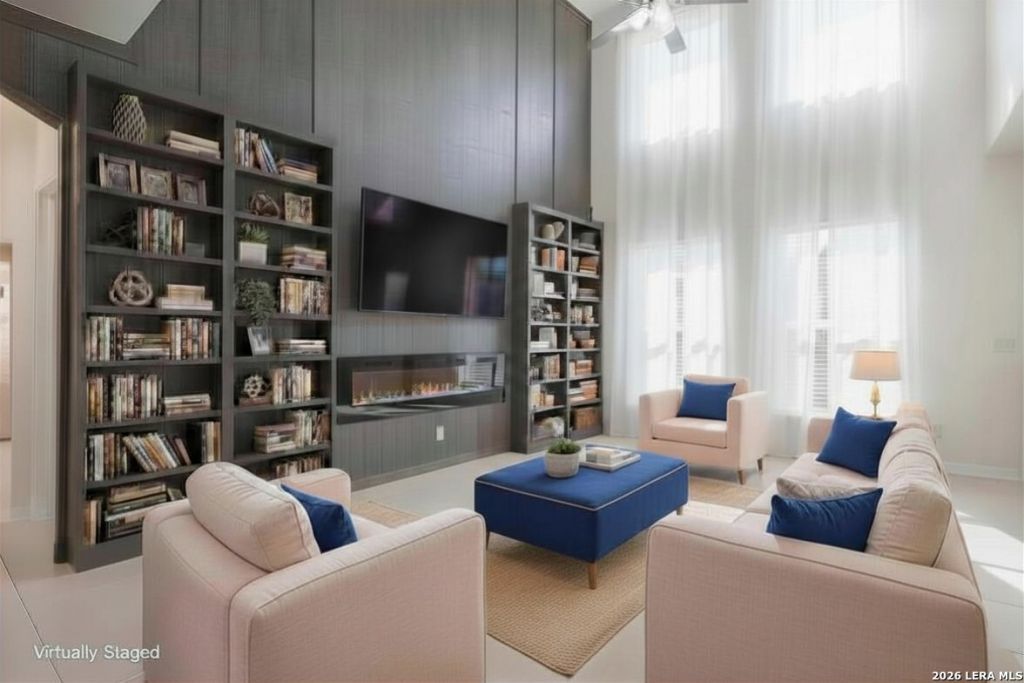 Want to escape the usual subdivision cramming? Then enjoy the sunset atop your stunning house on the hill, where you can take in peaceful views of a beautiful working ranch right from your front porch. Welcome to this stunning 4-bedroom, 3.5-bath home located on a quiet cul-de-sac in the highly sought-after Cypress Point community. Thoughtfully designed with both style and function, this residence offers a perfect blend of elegance and comfort. When you step up to the welcoming porch, you can almost hear "Welcome Home"-and its easy to imagine yourself relaxing here, soaking in those wide-open views. Step inside to a bright and airy living space featuring soaring 25-foot ceilings and an abundance of natural light streaming through bright, light-filled windows. When you enter the home, theres an inviting flex space that can be used as an office, dining space, or second living space on the first level. The open-concept floor plan seamlessly connects the living room to the spacious kitchen, which is a chefs dream with 42" cabinets, granite countertops, an oversized island, and a walk-in pantry-perfect for entertaining or gatherings. The downstairs primary suite is a private retreat with French doors leading to a luxurious primary bath featuring dual vanities, a walk-in closet, a water closet, a walk-in shower, and a jetted garden tub. Upstairs, discover a second versatile loft/flex space along with three spacious secondary bedrooms and two full baths. Every secondary bedroom offers generously sized closets, providing ample storage for everyone. The 2.5-car garage includes a 250 SF storage loft that provides substantial space for organized storage, keeping clutter out of sight and freeing up living areas. The private backyard and covered patios create an inviting outdoor space for gatherings, play, or quiet reflection. Fresh paint throughout enhances the move-in ready appeal of this home. Comal ISD schools!