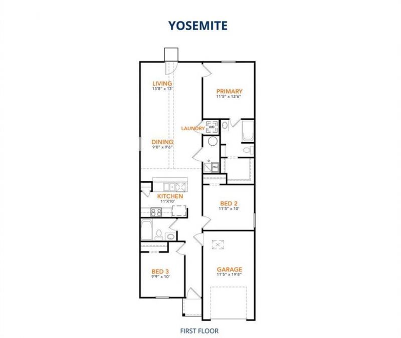 MLS# 21130117 - Built by NHC - Apr 2026 completion! ~ Model 1202 B1 - Yosemite The Yosemite Plan from our Freedom Series is a cozy and efficient single-story home featuring 3 bedrooms, 2 bathrooms, a 1-car garage, and 1,202 square feet of smartly designed living space. This split-level floorplan places two secondary bedrooms and a full bathroom at the front of the home, offering privacy and convenience. Continue into the open-concept living area, where the kitchen with a central island overlooks the dining area and family room—perfect for meals, gatherings, and quality family time. The primary suite is thoughtfully positioned off the family room for added privacy and includes a private bathroom and walk-in closet. The laundry room is also conveniently located on this side of the home for easy access.