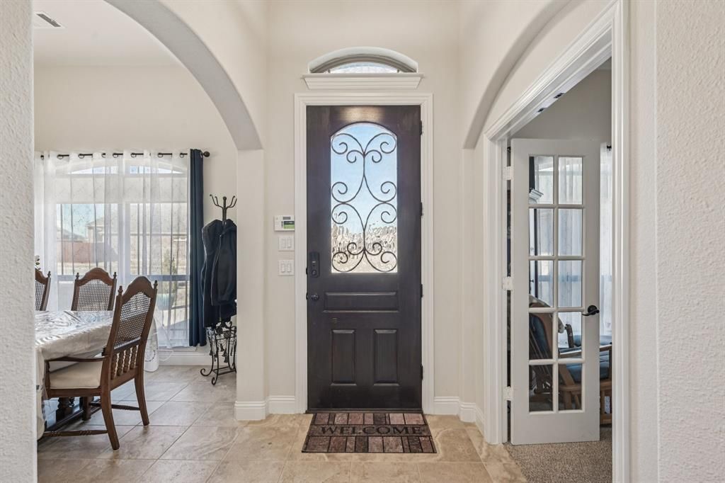 Beautiful single story home! Stunning curb appeal with side garage, stone accent, and glass with iron front door. Tile floors adorn the entry, halls, & family room. Stylish architecture with arches and tray ceilings. Gourmet kitchen with granite counters, center island, butlers pantry, 5 burner cooktop, and stainless appliances. Primary Bedroom with sitting area is perfect for king size furniture. Backyard with covered patio and pergola is perfect for outdoor living & entertaining. This home is a MUST SEE!