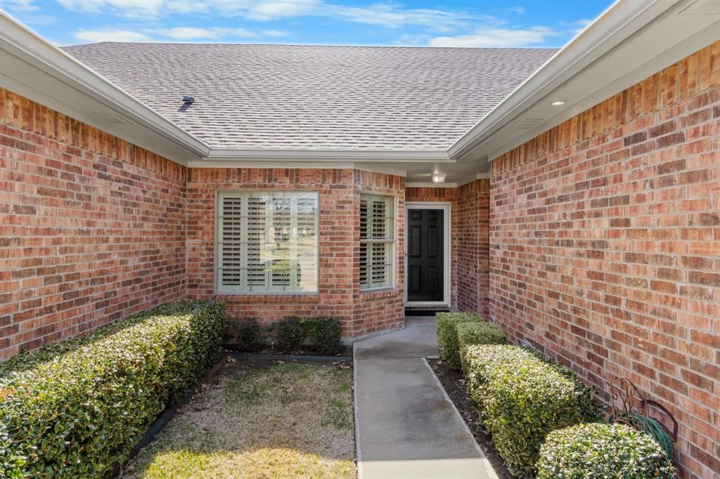 Tucked away in the charming Regal Village cul-de-sac community and zoned to Midway ISD, this thoughtfully designed home blends comfort, style, and low-maintenance living in a prime location close to everything you need. Inside, the open-concept floorplan is anchored by a warm and inviting main living area with hardwood flooring and abundant natural light. The kitchen is as functional as it is beautiful, featuring granite countertops, stainless steel appliances, bar-height seating, and a center island with counter-height seating—perfect for casual meals or entertaining. Glass-front built-ins flanking the bar area provide extra storage and a stylish place to showcase your favorite tchotchkes and décor. Just off the main living space, a designated office or study with bay windows offers an ideal work-from-home setup or creative retreat. Throughout the home, plantation shutters on every window add timeless elegance and privacy. The isolated primary suite is a true sanctuary, complete with two spacious walk-in closets and a generous ensuite bath featuring dual vanities, a separate soaking tub, and a walk-in shower. A comfortable secondary bedroom and full bath provide flexibility for guests or additional living needs. Thoughtful extras elevate the value: two refrigerators, washer and dryer, and even the patio furniture convey, making this home truly move-in ready. Best of all, the HOA covers all exterior maintenance, including the roof, fencing, sprinkler system, and landscaping, allowing you to enjoy a lock-and-leave lifestyle without sacrificing quality or charm. This is a special, close-knit community in a fantastic location—an exceptional opportunity to enjoy easy living with upscale touches throughout.